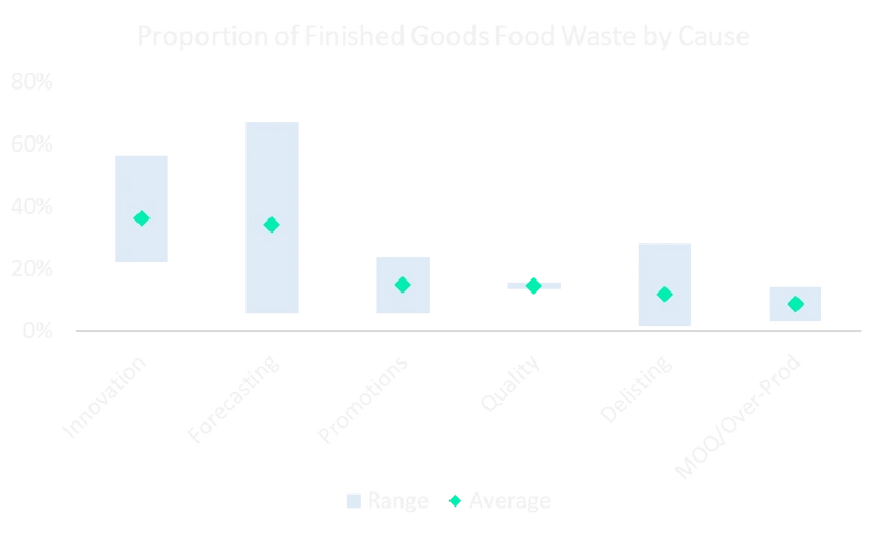 Finished Goods Food is wasted before reaching consumers baskets for many reasons, ranging from hard to manage quality root causes to managing excess inventory for product innovations or delisted products where there is a great opportunity for companies to invest in a stronger process and data-driven decision making.